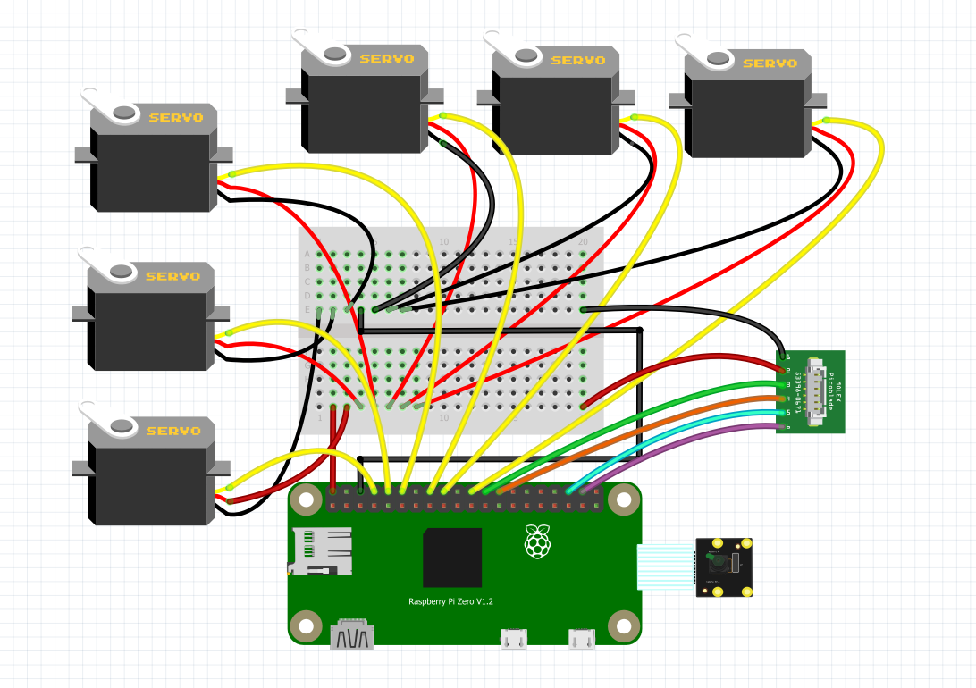 DUM-E, inspired by Tony Stark's robotic assistant is a tool I made to use to help me as a desktop assistant. The idea is to use 6 servo motors for 6 degrees of freedom for a robotic arm that can switch out tools using different modular attatchments each with a unique fiducial stickers for the object detection on the raspberry pi zero. I can use it for pick and place components on my PCB for easier SMT soldering and for soldering wire. The components would be housed in a 3D printed casing with motor mounts and gearings for a belt drive on the shoulder. The motors will use the PWM (pulse width modulation) to move the motors as the raspberry pi is coded in python.